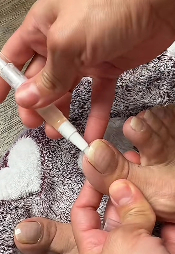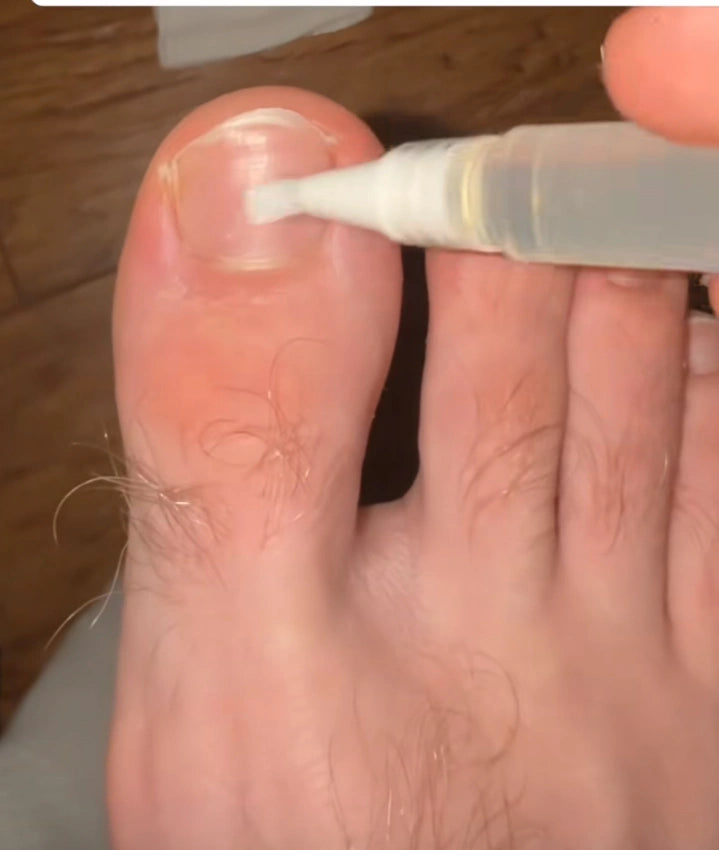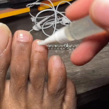 Commencez par nettoyer et bien sécher vos pieds. Tournez le stylo dans le sens des aiguilles d’une montre : le pinceau s’humidifie. Appliquez ensuite sur les ongles concernés, 2 à 3 fois par jour. Ce soin peut aussi s’utiliser en prévention, pour renforcer les ongles au quotidien.